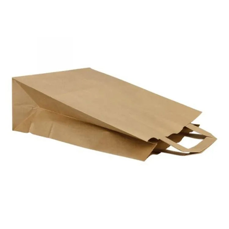 Kraft papirnate vrečke z ravnimi papirnimi ročaji se lahko uporablja v gostinski industriji, v supermarketu in kot darila. Izdelani so iz robustnih in trpežnih materialov, jih je mogoče večkrat ponovno uporabiti, so kompostirljivi in biološko razgradljivi.